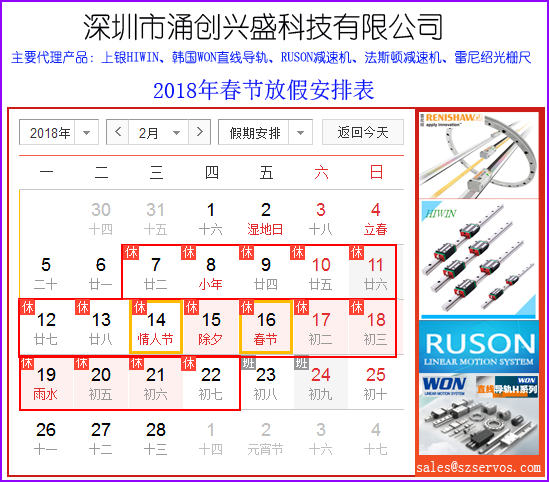 放假期間,為了方便您在節(jié)日期間獲得我們的客戶服務(wù),您可以通過電子郵箱:sales@szservos.com與相關(guān)服務(wù)人員取得聯(lián)系。