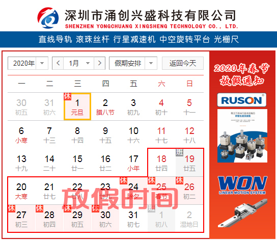 在2020年春節(jié)即將到來之際,涌創(chuàng)公司非常感謝您們一直以來的支持和關(guān)注,非常感謝您們對我公司代理產(chǎn)品WON直線導(dǎo)軌及