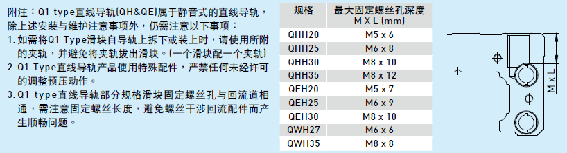 4. 異物進入滑塊內(nèi)是造成滑塊故障與損壞的原因之一,應(yīng)注意予以避免。
