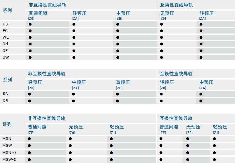 上銀直線導(dǎo)軌預(yù)壓等級表