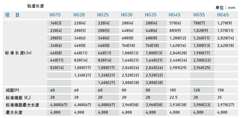單支導(dǎo)軌標(biāo)準(zhǔn)長度及最大長度