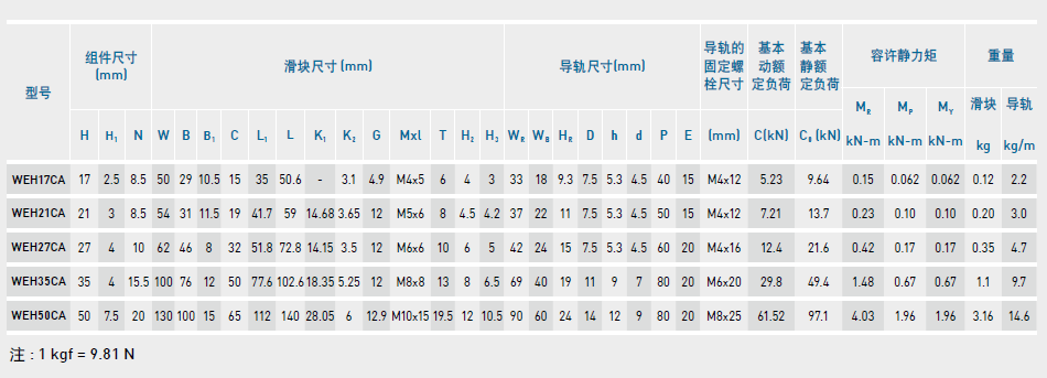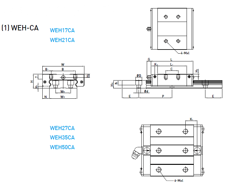 直線導(dǎo)軌寬幅型直線導(dǎo)軌WE系列尺寸表