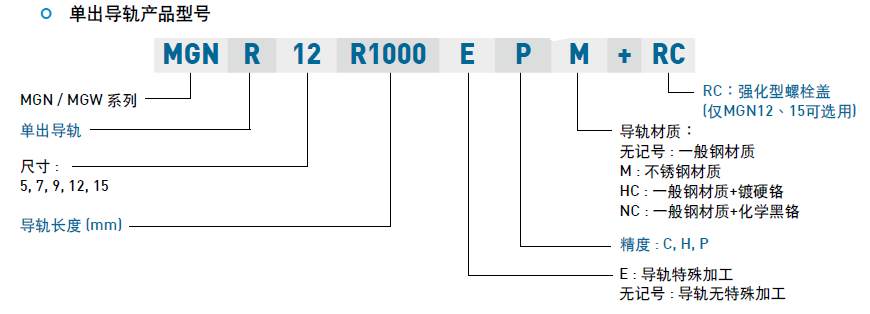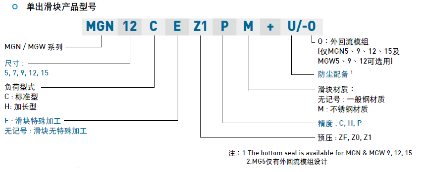 2. MGN及MGW規(guī)格9,12,15可選用防塵片。