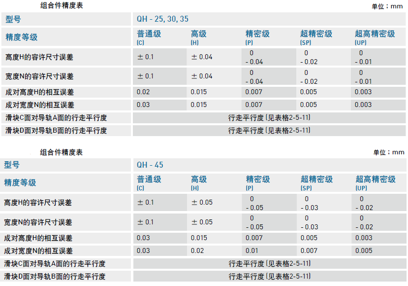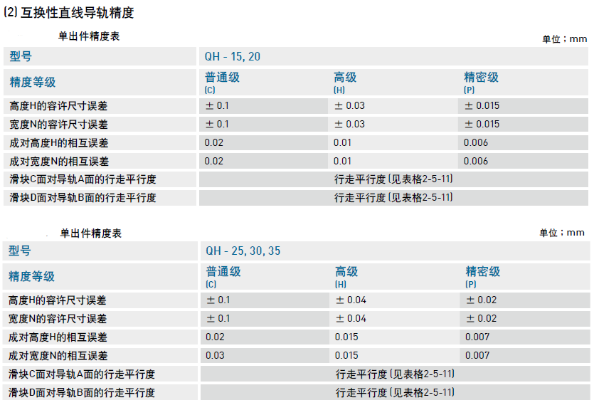 靜音式重負(fù)荷型滾珠直線導(dǎo)軌QH系列精度等級