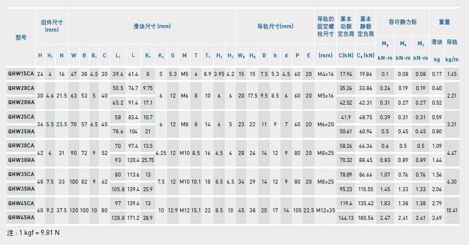 QH系列直線導軌尺寸表