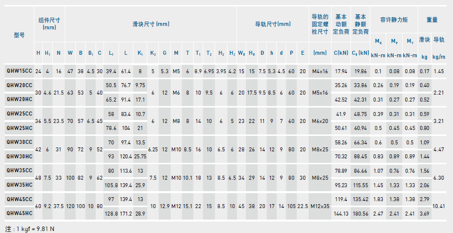 直線導(dǎo)軌QH系列之CB、CC、HB、HC對比