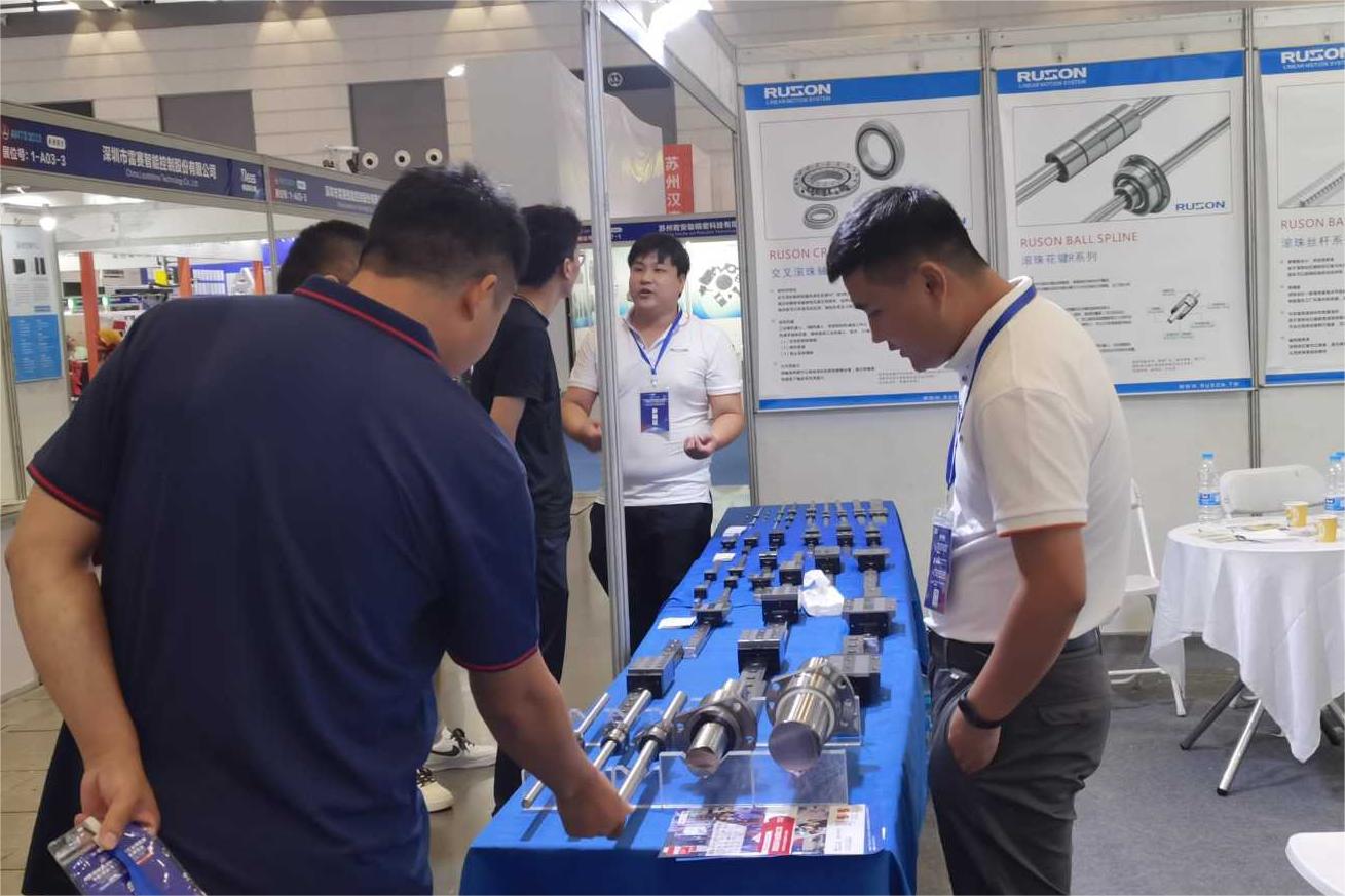 展會現(xiàn)場負責人員介紹RUSON系列產(chǎn)品,直線導(dǎo)軌、絲桿、花鍵。